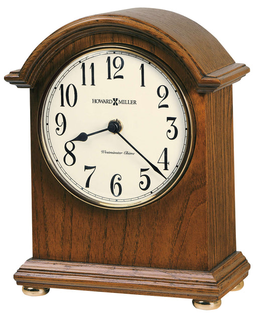 Finished in Oak Yorkshire on select hardwoods and veneers. This arched mantel clock features a decorative top molding, a polished brass-finished...