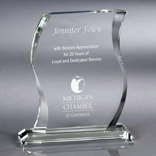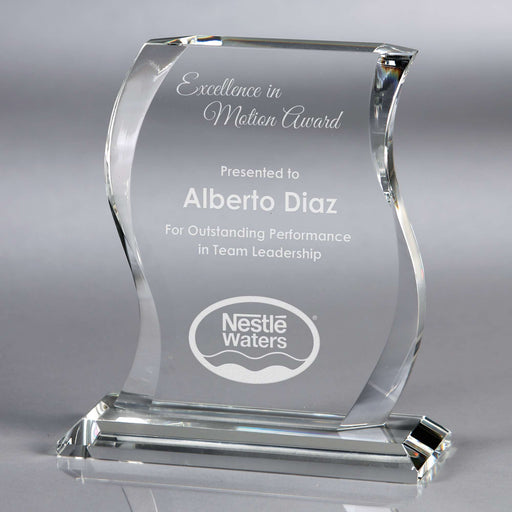 A sense of motion, movement, and action is the feeling this dynamic design imparts. Fitting recognition for your “movers and shakers.”