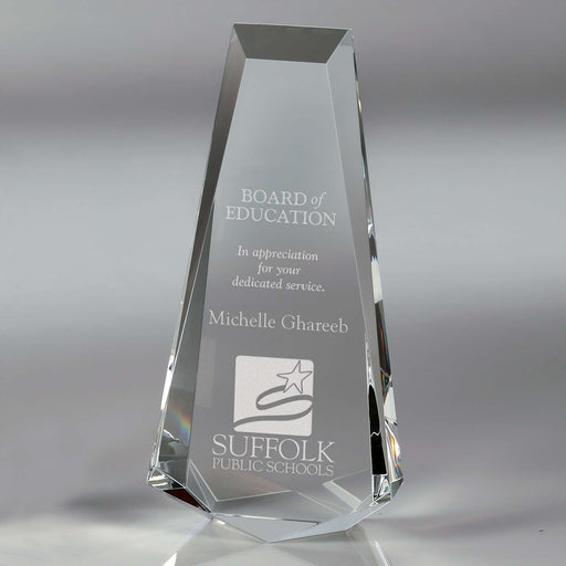 Oh my! What a beautiful work of art! Countless reflections and crisp facets make this award a joy to give and to get. The optically clear crystal u...