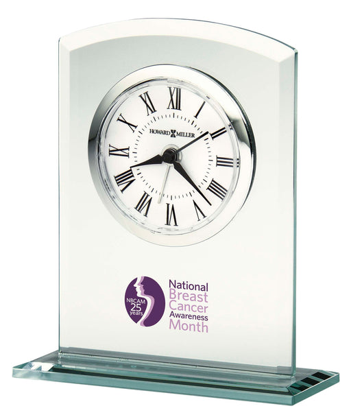 TABLE CLOCK: The Monticello Table Clock is brass-finished featuring a glass center panel and dial with a circular brushed silver numeral ring to co...