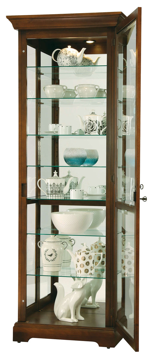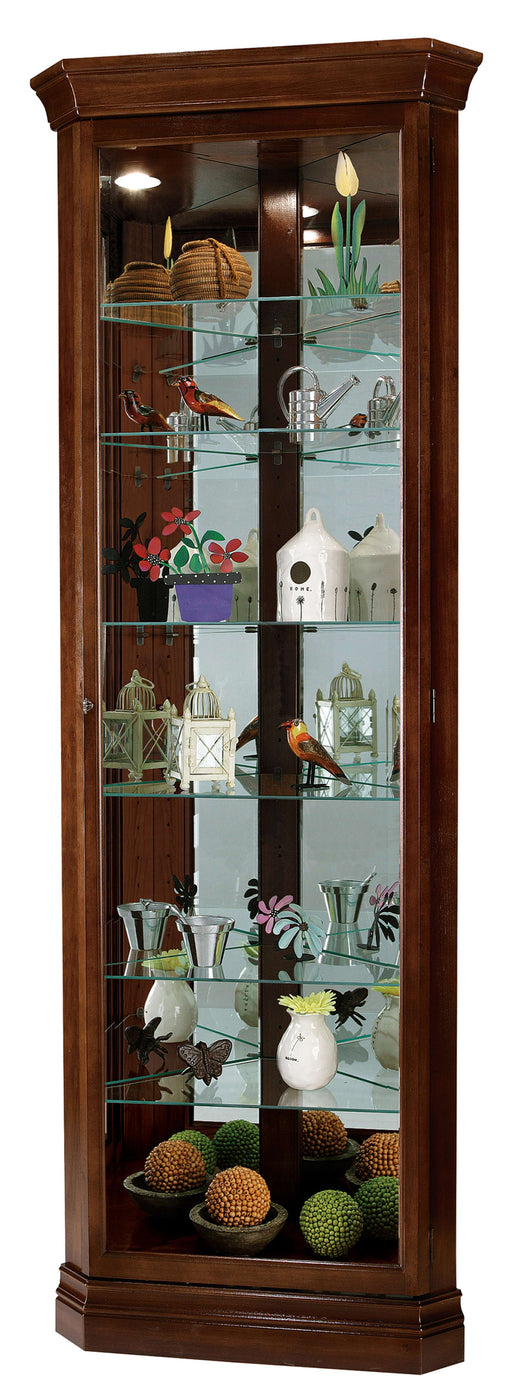Put your valuables on display with this classic HowardMiller Curio Cabinet, proudly made in the USA. Cabinet Design: This cabinet features a Golde...