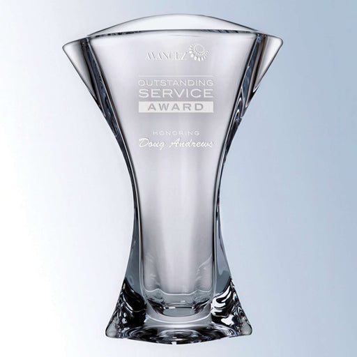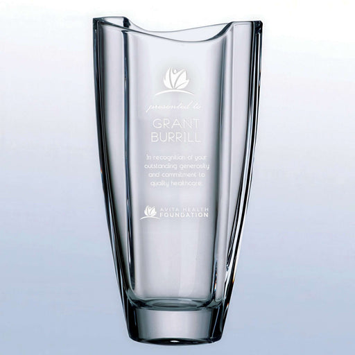The wide arches that make up every edge of this clear crystal vase maximize the potential for engraving. This functional piece will fit seamlessly ...