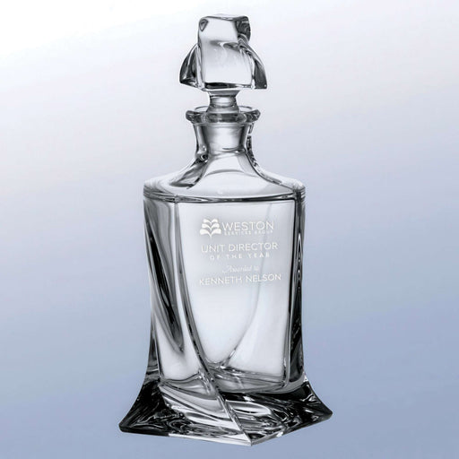 This clear crystal whiskey decanter design embodies a robust square base that artfully smooths to a rounded top. *Minor bubbles and wrinkles are in...